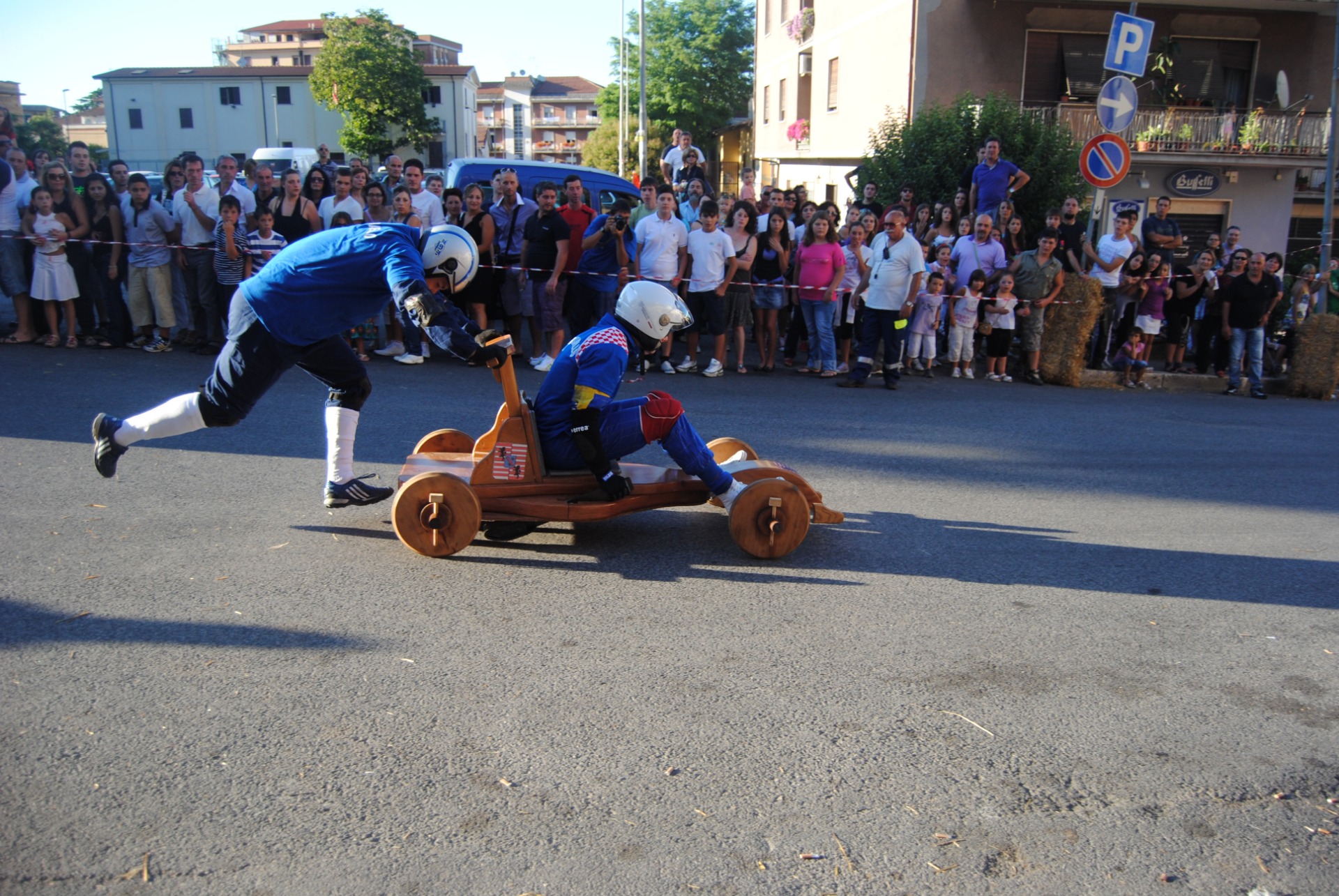Le gare del Palio iniziano con la corsa della Carrettella, mezzo antico costruito in legno e spinto la sola forza delle braccia. Le contrade si sfidano su un percorso in discesa di circa 400 metri con arrivo in Villa Borghese. Vince il gioco la contrada che impiega il tempo minore a coprire le due manche del gioco. Velocità, forza, abilità e "una buona guida" sono le doti necessarie per primeggiare.
